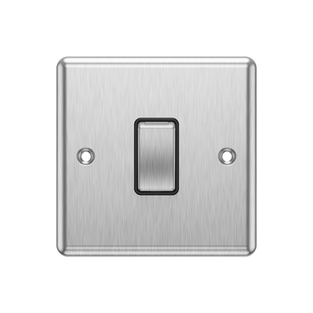 Elevate your interior with the sleek and modern 1 Gang 2 Way Light Switch in Brushed Chrome with a Black Insert. This high-quality light switch offers both style and functionality, making it a perfect choice for contemporary and classic home designs. Ideal for controlling lighting in various rooms, it provides convenience and a refined aesthetic.
