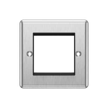 Transform the look of your living space with our 4 Gang Mod Plate in Brushed Chrome with Black Frame, combining practical functionality with contemporary design. It's an ideal choice for anyone looking to enhance the style and utility of their home or office electrical installations.