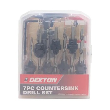 Our Dekton Countersink Drill Set includes seven pieces, offering a range of sizes to cater to your every drilling need. This versatile set ensures you'll always have the right tool for the job, whether you're creating a small pilot hole or a larger, countersunk hole. It's the ideal toolset for carpenters, builders, electricians, and DIY enthusiasts.