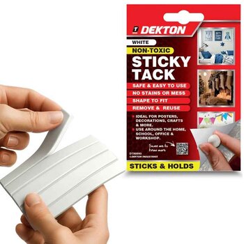 Experience heightened convenience and versatility with Dekton White Sticky Tack, your ultimate adhesive solution. This safe, reliable, and reusable tack is the perfect tool to suit all your hanging and mounting needs, without leaving unsightly holes or residues behind.