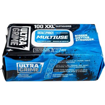 The Ultra Grime Multiuse Pro Xtreme Wipes are the ultimate solution for tackling tough cleaning jobs, whether at home, in the workshop, or on the go. These heavy-duty, extra-large wipes are designed to handle grease, grime, paint, adhesives, and dirt effortlessly, making them the ideal choice for professionals and DIY enthusiasts alike. With a robust cleaning formula and textured surface, Ultra Grime Wipes provide fast, effective results on all surfaces without the need for water or harsh chemicals.