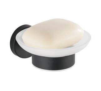 High-quality soap tray for hand soap with detachable, frosted glass bowlHolder made of rustproof, matt-finish stainless steel in trendy, black, loft designScrews/dowels included