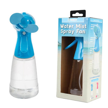 400ml water tank. Cool breeze. Soft EVA blades. Spray nozzle. Spray lever. Battery powered. 2 x AA batteries included.