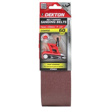 Don't compromise on the finish and quality of your work. Choose the Dekton Sanding Belt 60 Grit 75x533 3pc for superior performance, easy operation, and exceptional value. Order yours today!