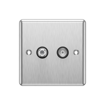 Upgrade your media setup with the stylish and functional 1 Gang Sat Coax Outlet in brushed chrome with a grey insert. This high-quality outlet is designed to seamlessly integrate into any modern living space, offering a sophisticated solution for your television and satellite connections. Its brushed chrome finish and discreet grey insert blend beautifully with contemporary decor, ensuring your fittings are not only practical but also enhance your home aesthetics.