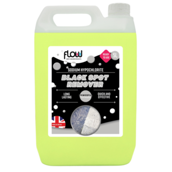 Flow's Black Spot Remover is a powerful cleaning solution designed to eliminate stubborn black spots, lichen, algae, and moss from outdoor surfaces such as patios, driveways, and pathways. Available in a 5-liter container, this ready-to-use formula contains sodium hypochlorite, known for its effective stain-removing and disinfecting properties.