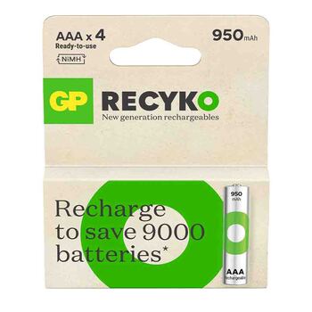 Experience the power, reliability, and sustainability of GP Recyko 950 AAA rechargeable batteries. Make the switch today and power your world with the best!